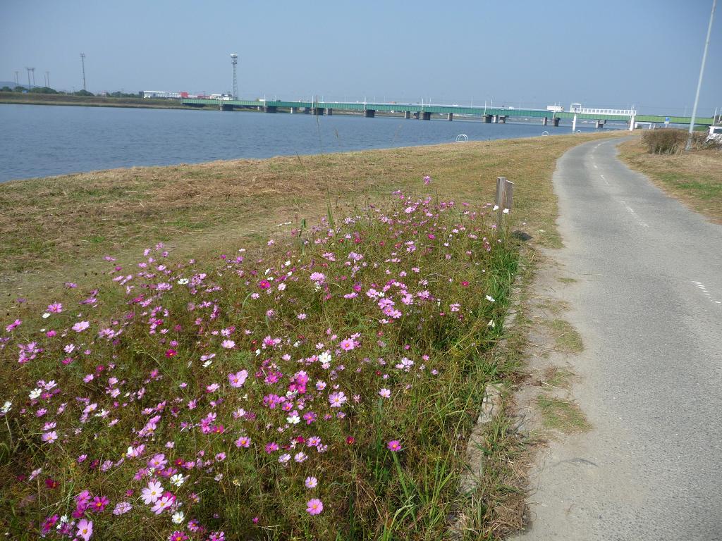 途中、遠賀川沿いの河川敷でコスモスを見て来ましたが、残念ながら今年は不作でした。