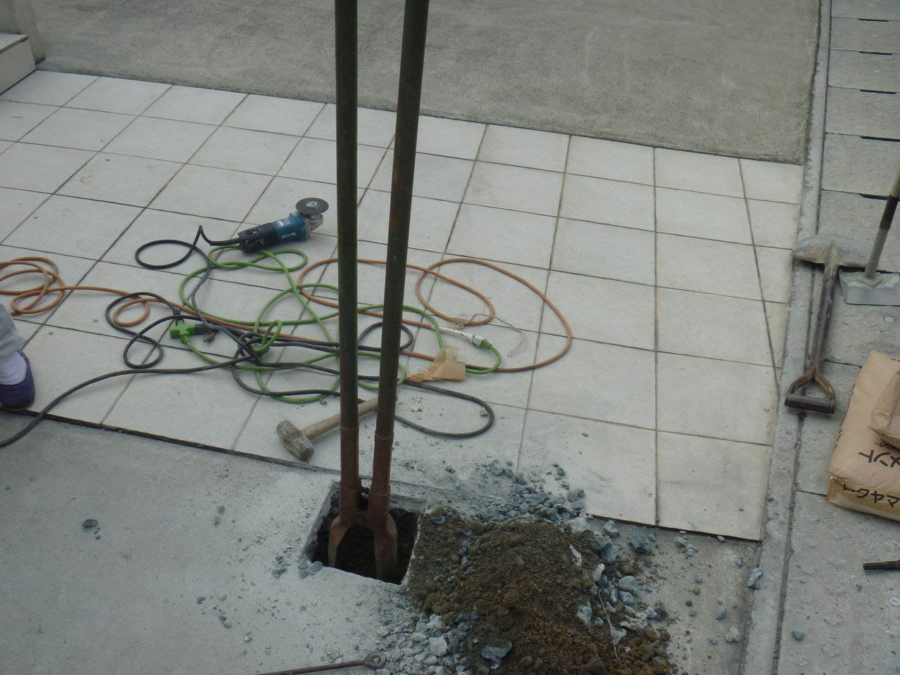 ある程度ハツると40cm程掘り込みます。