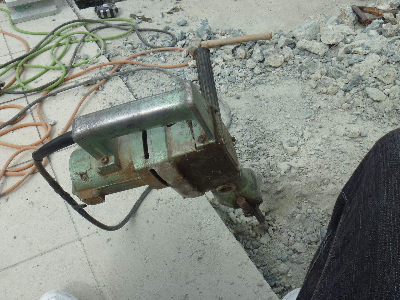 朝飯も食べずに久しぶりのハツリ作業なのでギブアップしています。