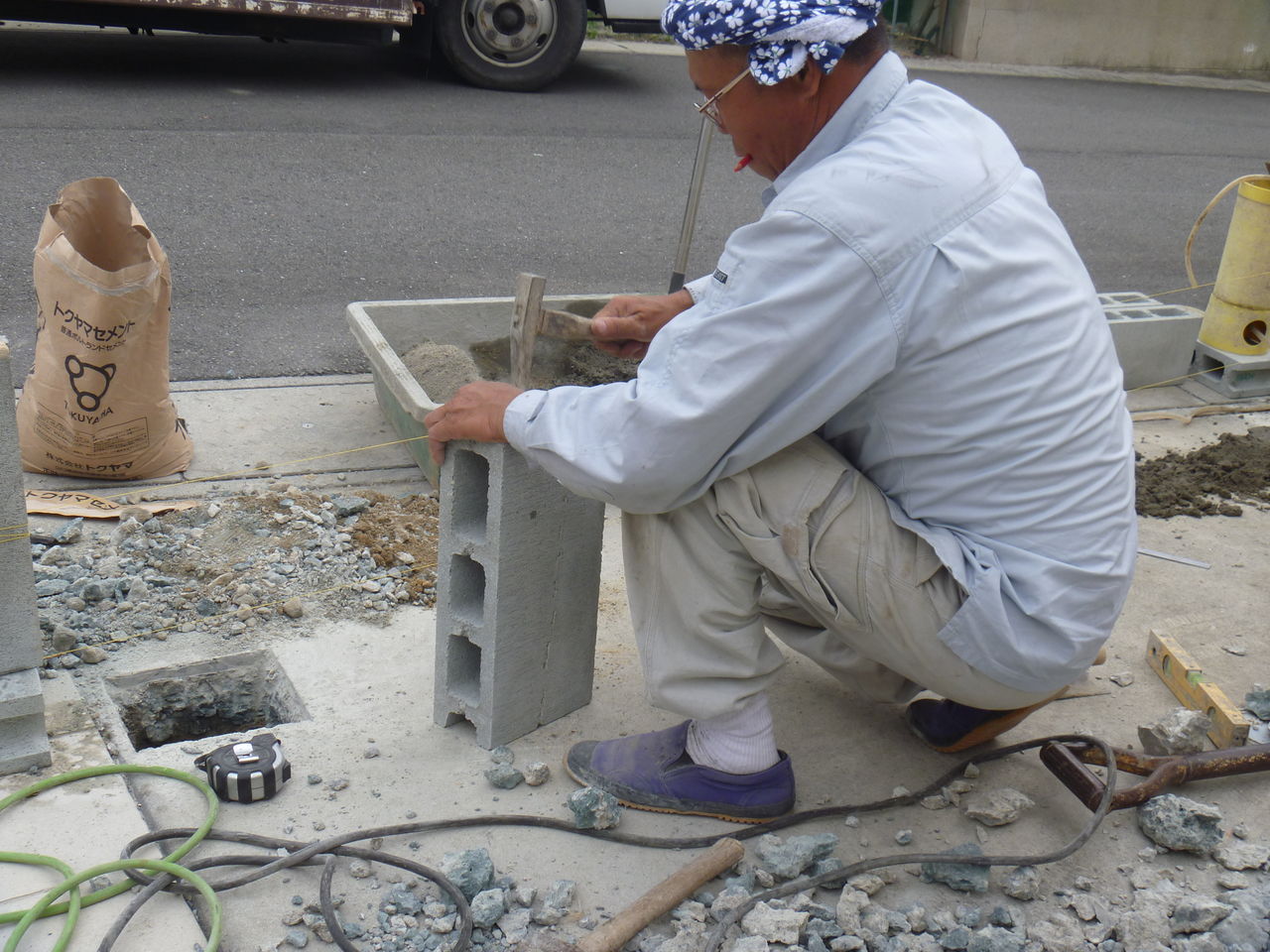 職人さんのブロック崩しの名人です。
