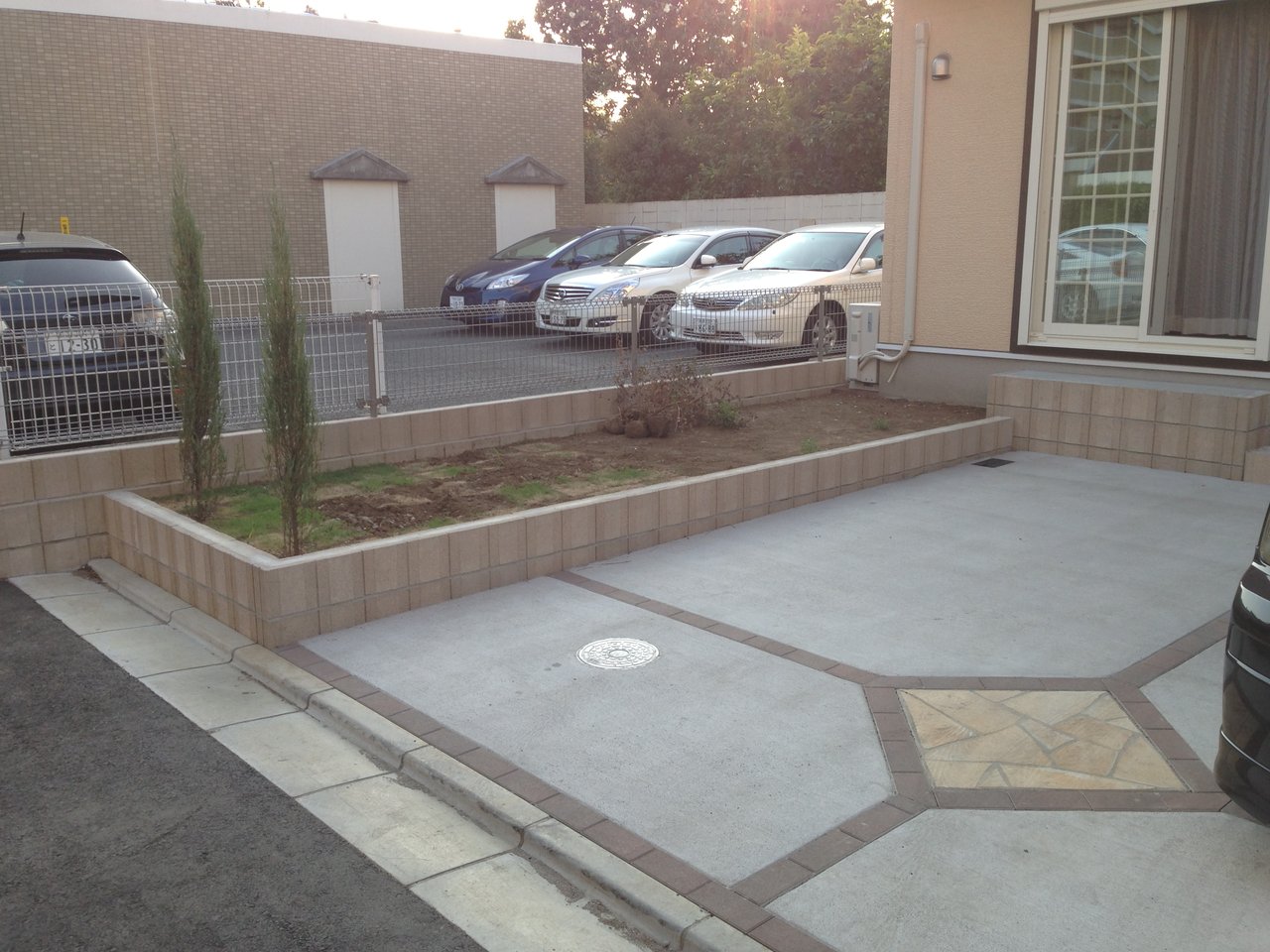今回は、現地が下り坂でカーポートの奥に入れ込みます。