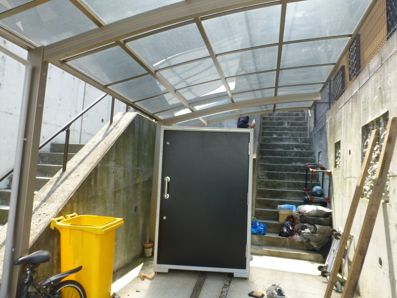 実は、設置作業がとても困難で写真が少なくバイクロッカーの全貌が撮れていません。