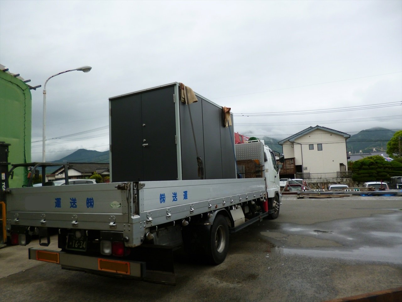 移動しているとお客様とクレーン車が入ってきたので早々に作業に入ります