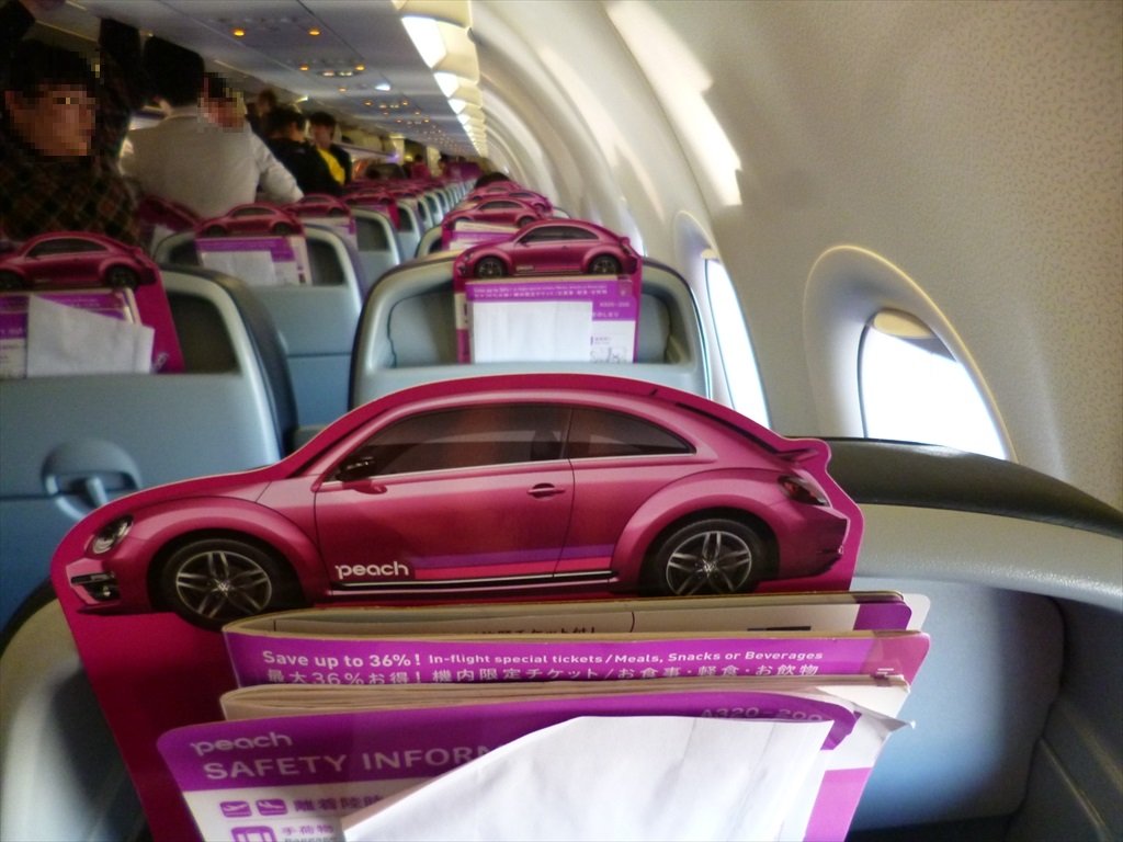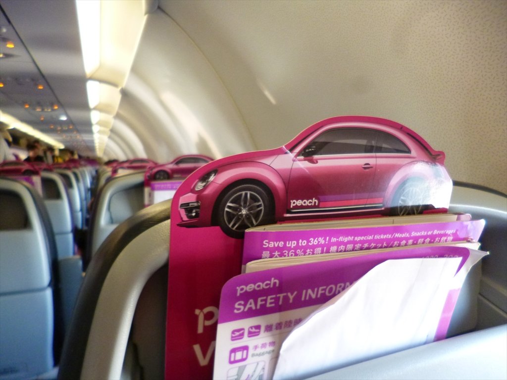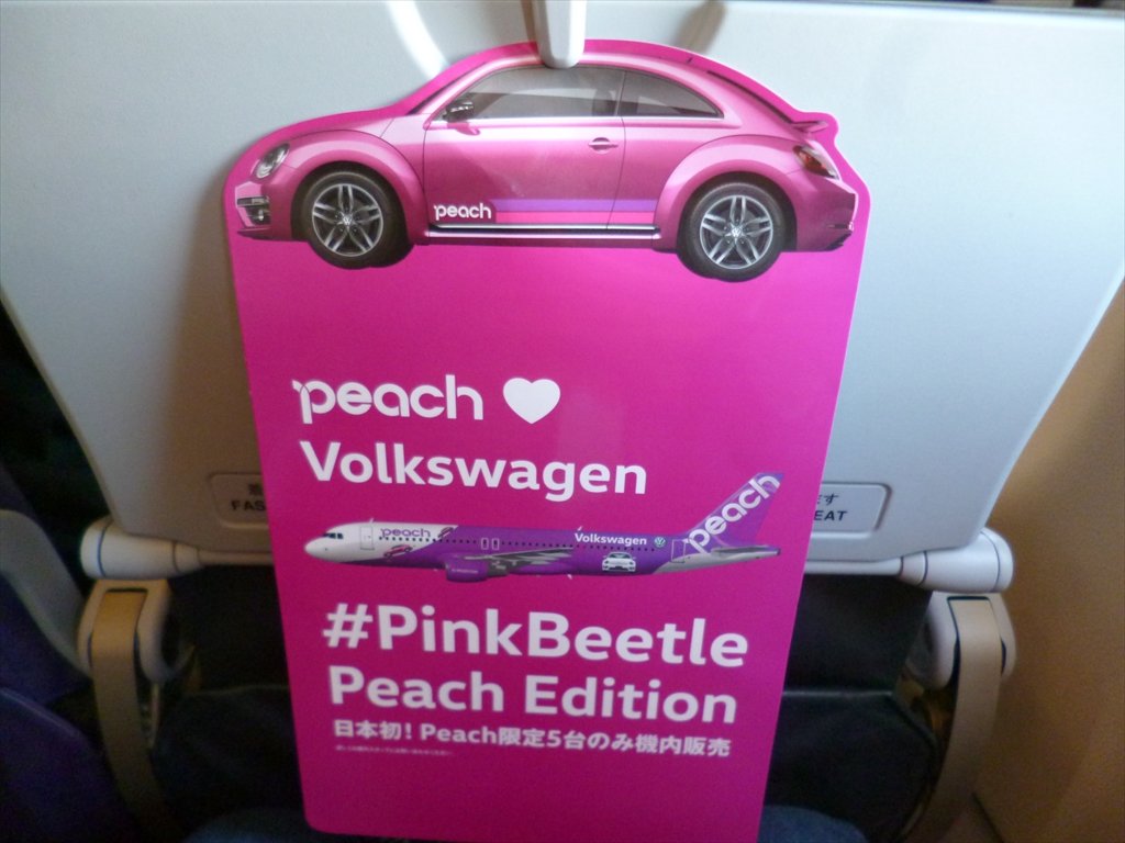 飛行機に乗ると、ザ・ビートルピーチ ピンクがいっぱいです。