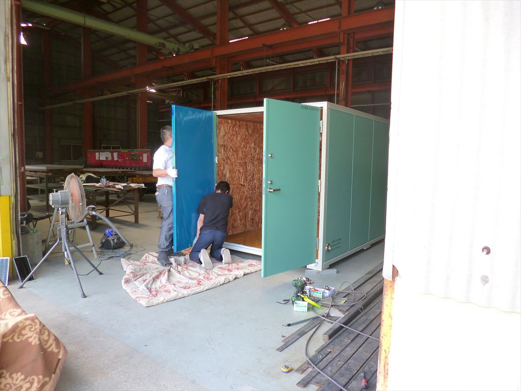 バイクロッカーは1800×2990なので700kgの重量なので前卸はお互いの声掛けが重要です。
