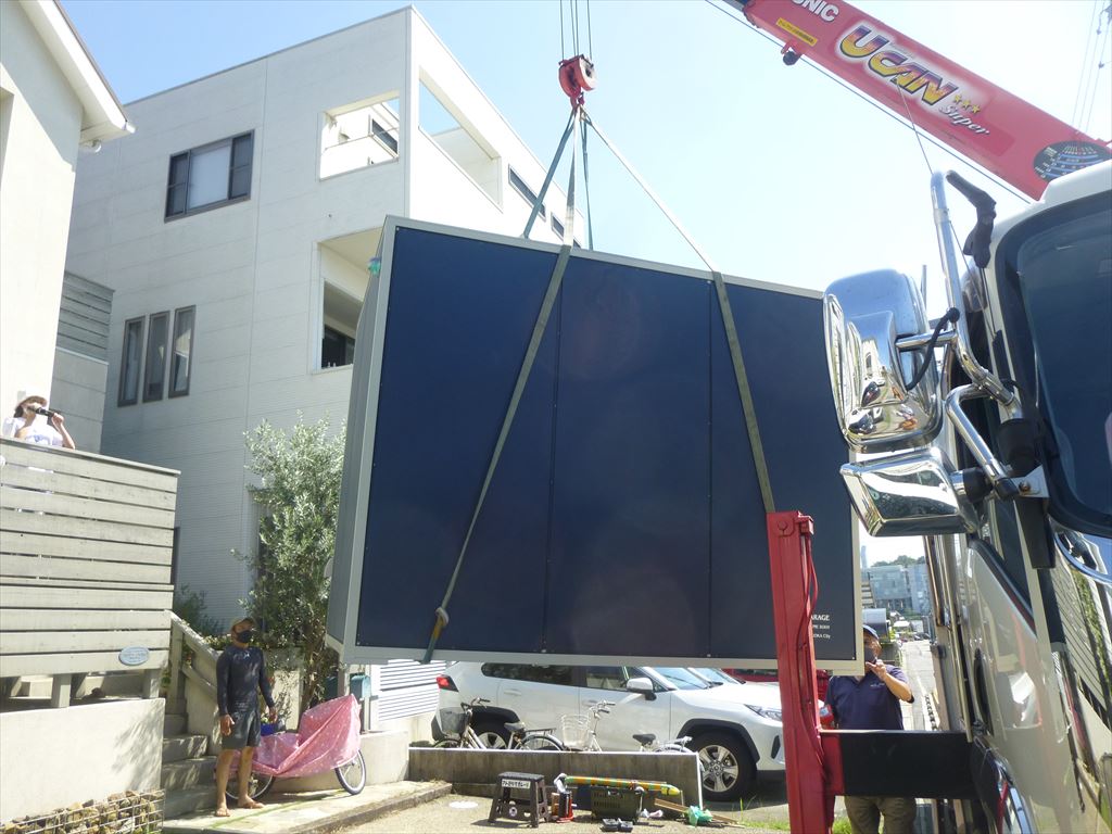 敷地のレベルに合わせてお客様の希望するところに数センチ単位で移動します。