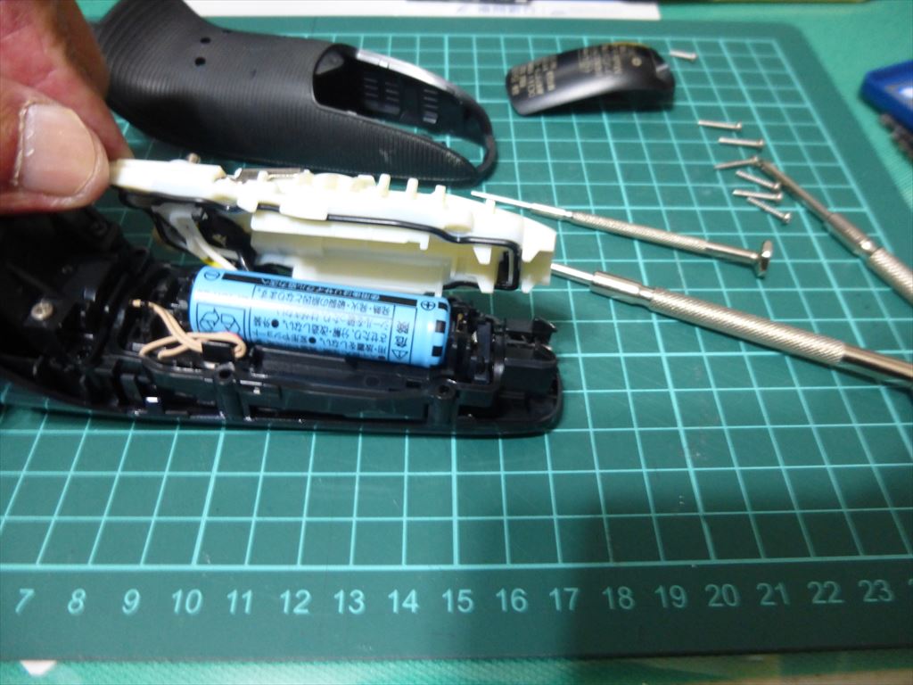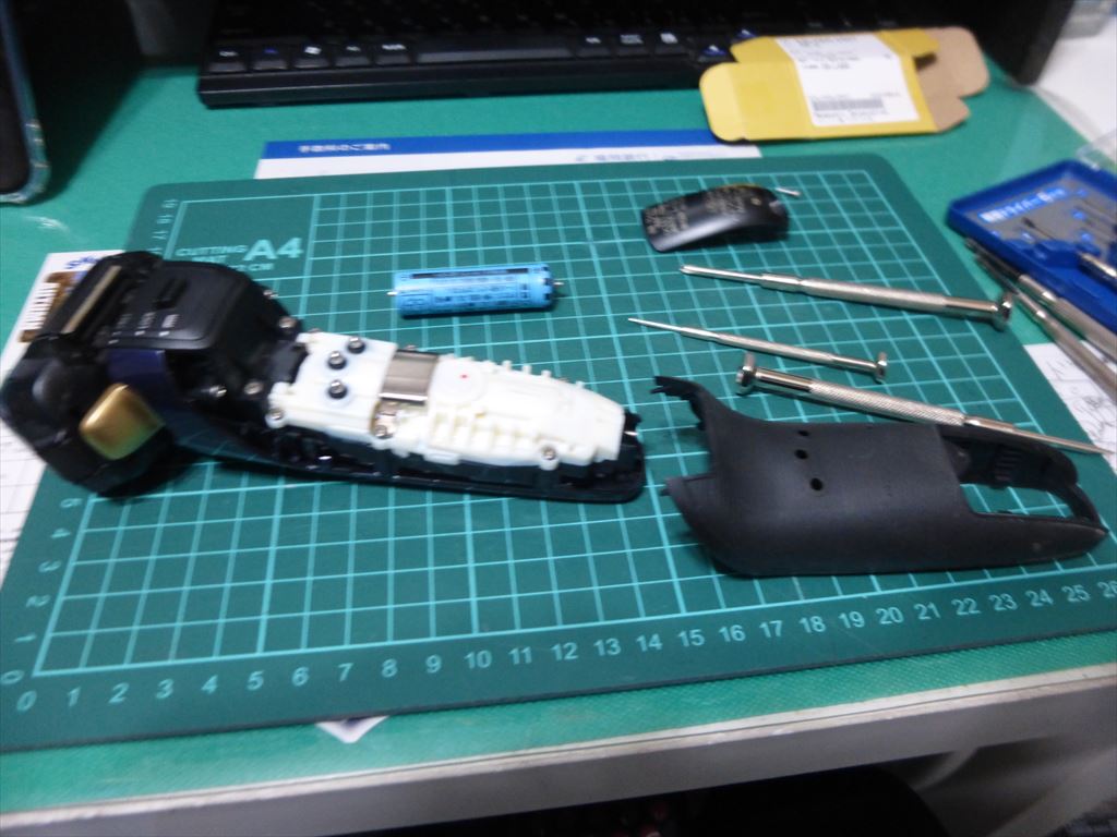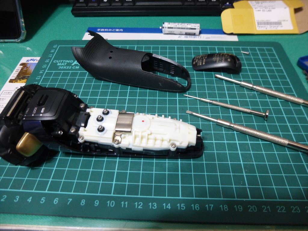 外すとこのカバーが外れるので、次は外カバーを丁寧にマイナスドライバーでケースを外します。