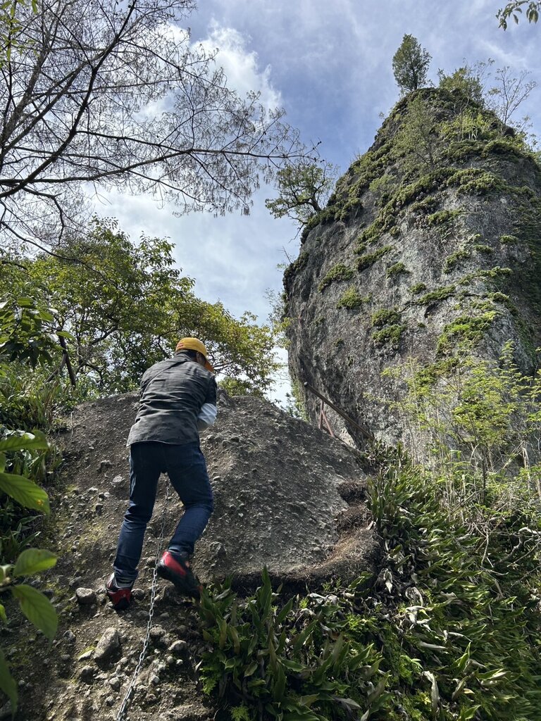 しかもこの先に絶景が見えるところがありチェーンで山登りの真似をして下ります。